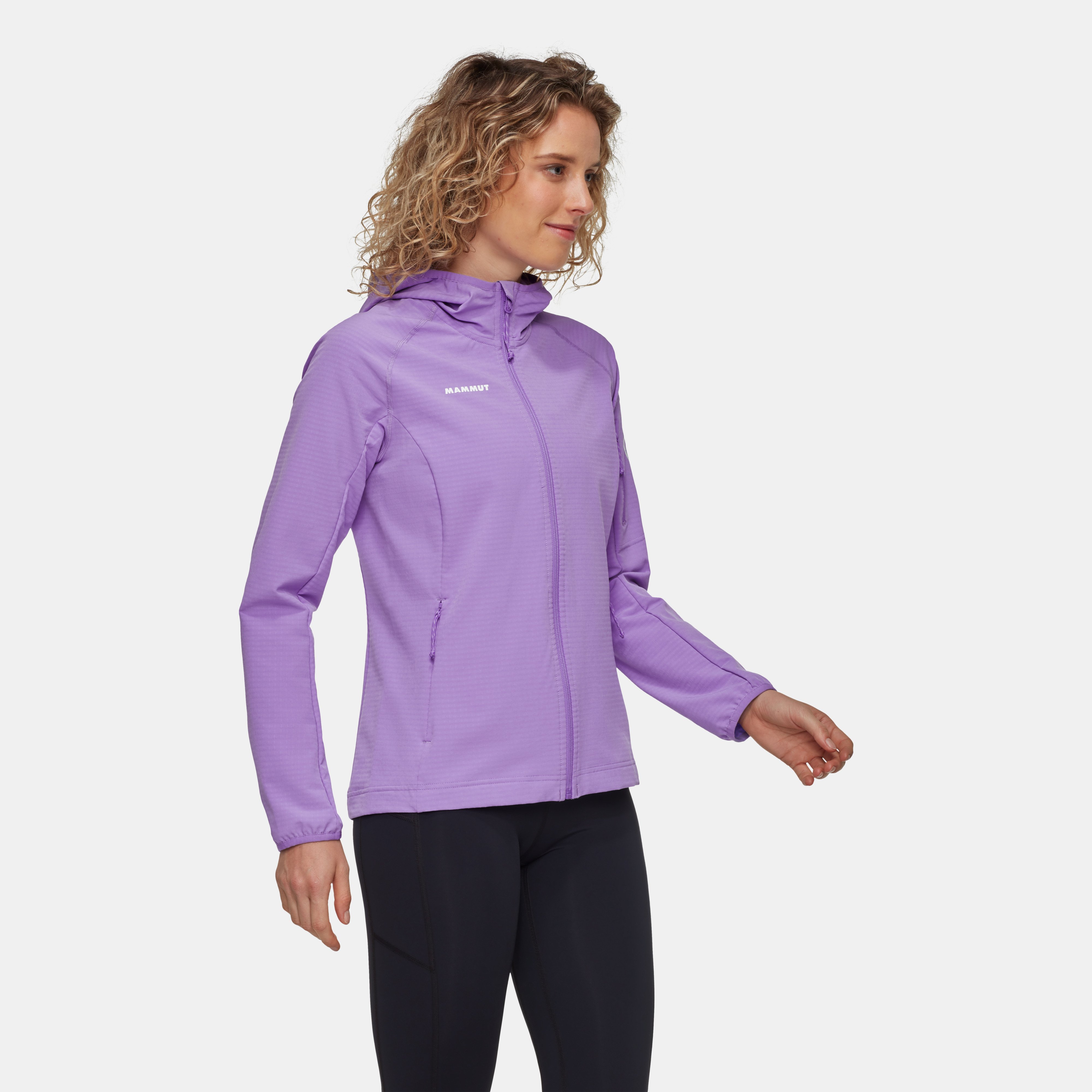- Lightweight, elasticated and wind-repellent outer material with pleasant fleece waffle structure on the inside
